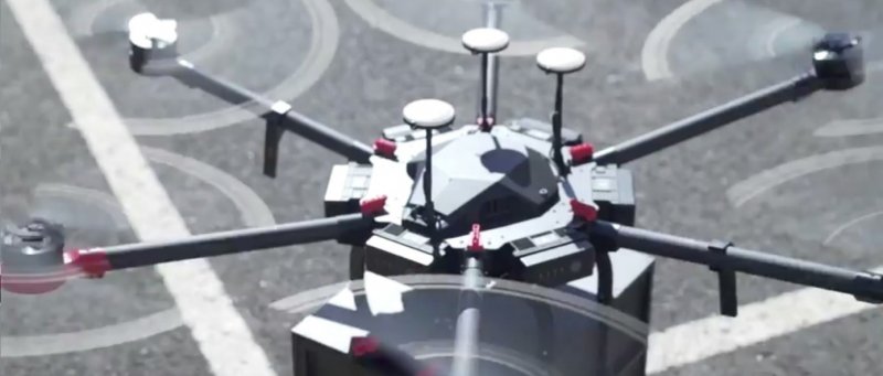 Testovací režim je již v plném proudu. Dron doručuje zboží mezi dvěma částmi města, která jsou oddělená řekou a zálivem. Každý dron nese v podvěsu kontejner, do kterého se vloží zásilka – obvykle jídlo – viz obrázek níže.