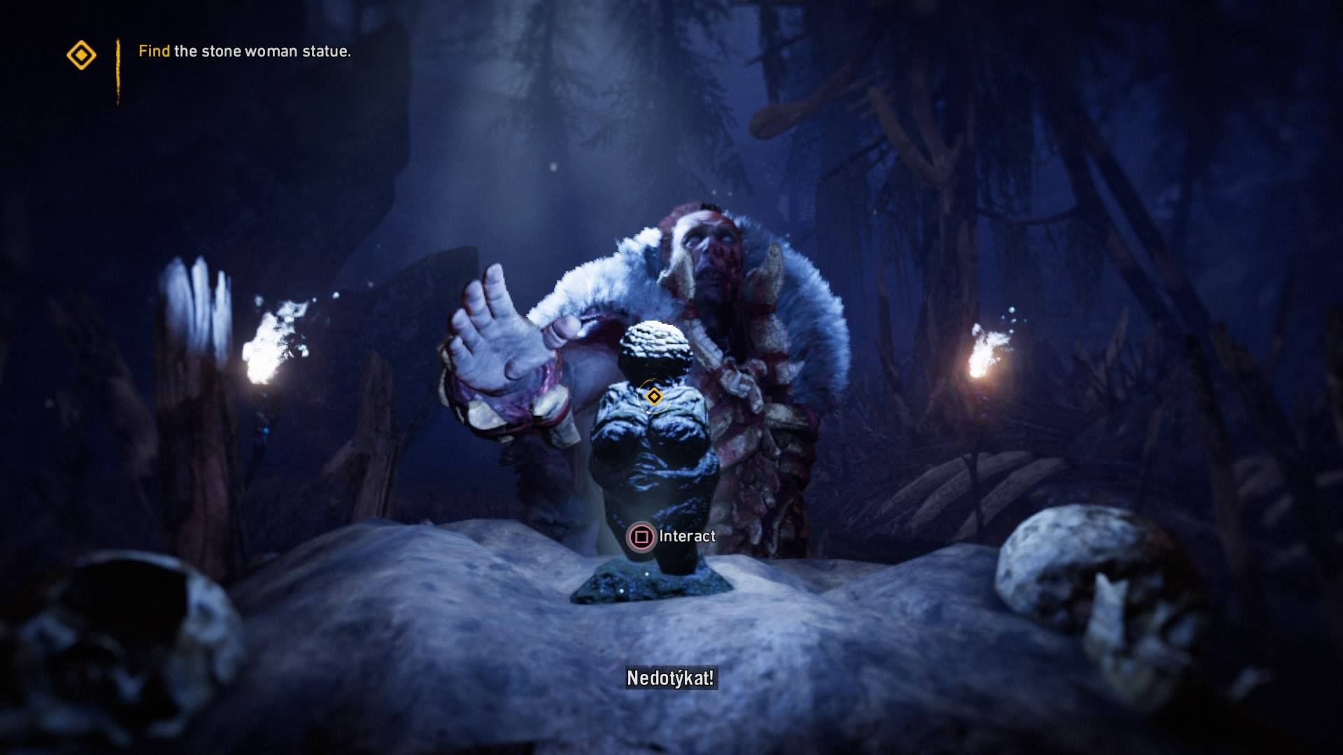 Autenticitě pravěkého okolí pomáhá zejména primitivní (zcela smyšlený) jazyk, kterým zdejší lid hovoří. Špatný překlad. Spojen s tím. Zasloužit pochvala. Očarování ze zasazení má ale jen dočasný efekt. Jakmile si hráč na tento kabátek zvykne, nelze se zbavit pocitu, že něco takového už tu bylo. A ne jen jednou, rovnou dvakrát.