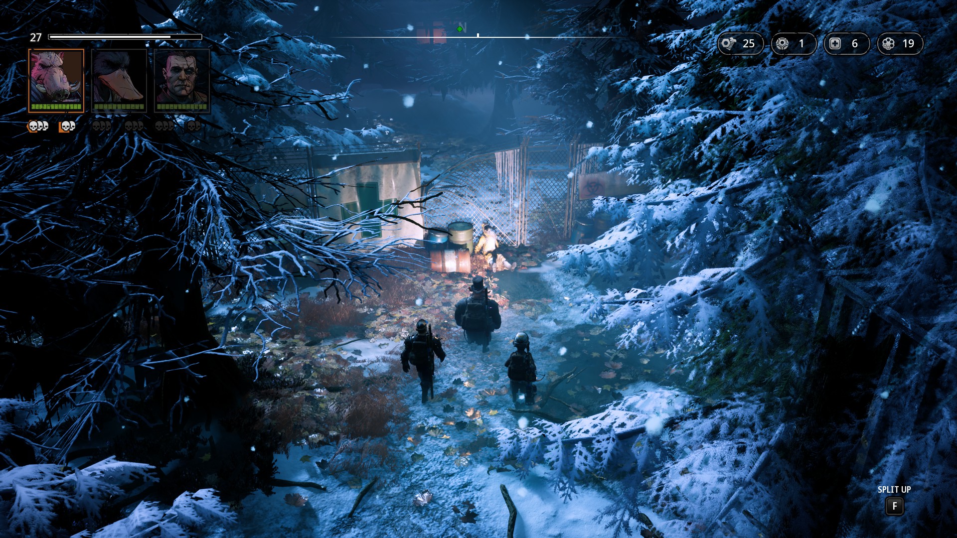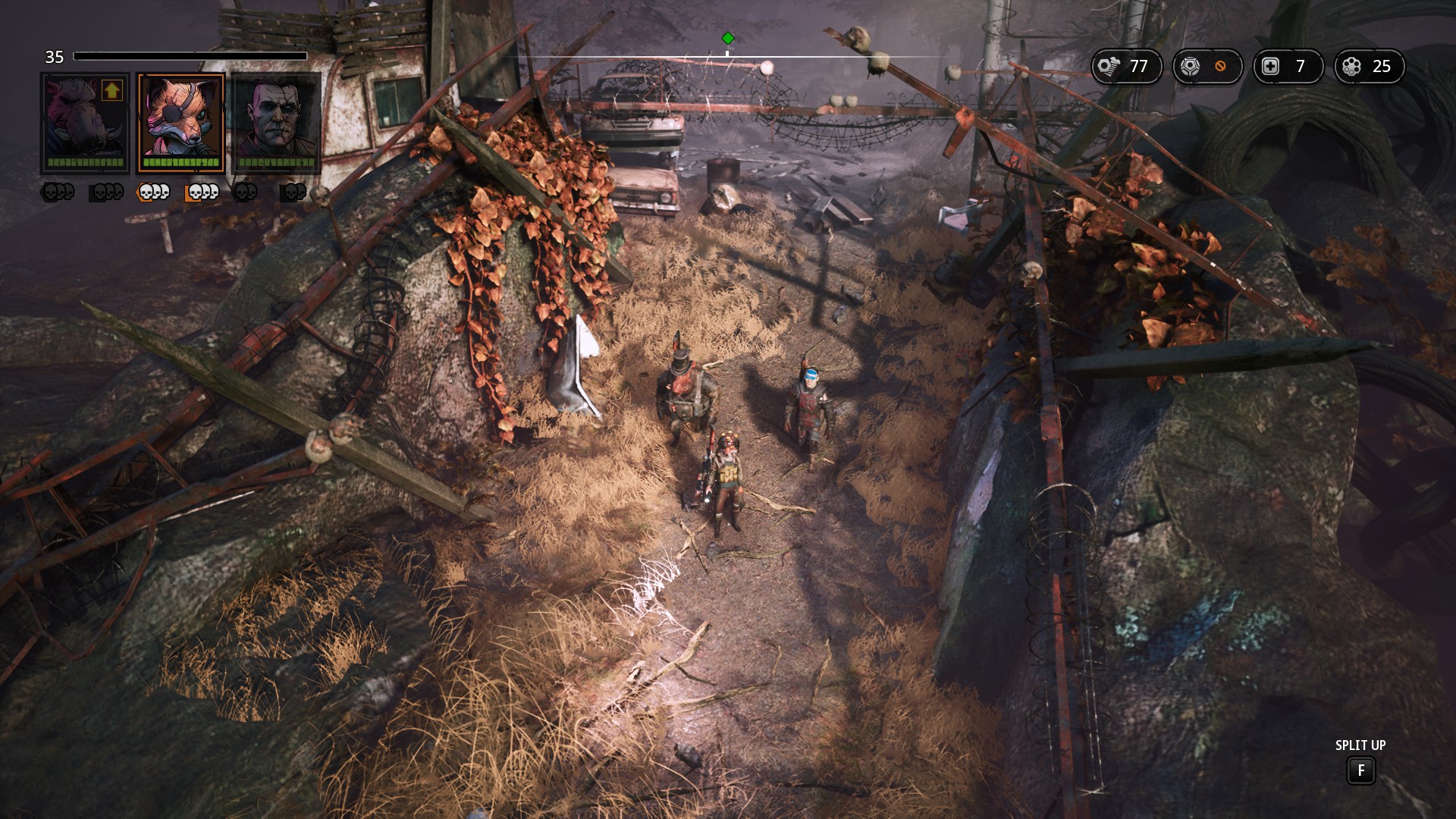 Vaše skupinka mutantů může obsahovat maximálně 3 postavy, přestože vašich společníků potkáte během putování více. Právě pouze mimo boj můžete libovolně členy vaší skupiny měnit a to včetně vybavení a jejich dostupných schopností, které jste si levelováním u každé postavy otevřeli.