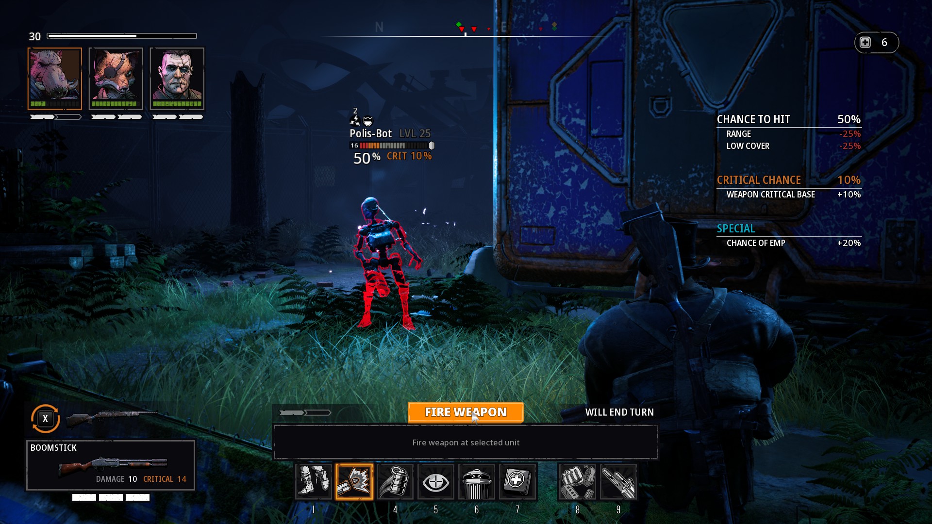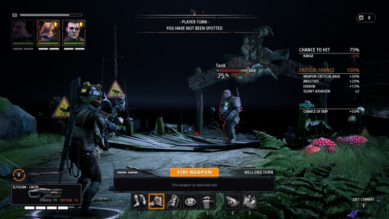 Boj je podřízen striktnímu pravidlu, kdy každá postava má maximálně dva akční body. A to se nezmění ani levelováním, ani ničím jiným. Prostě berte nebo nechte být. Navíc pokud vystřelíte, váš tah automaticky končí. Pokud tak chcete v kole vystřelit, první akční bod můžete využít na přemístění, nabití zbraně, použití lekárničky nebo aktivaci vaší speciální mutantské schopnosti, která vás nejednou vytáhne z bryndy.