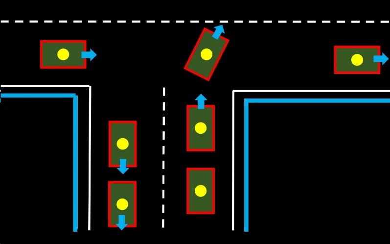 V ideálním případě – resp. původní čistě akademická myšlenka autonomního vozu – byla taková, že každý vůz je reprezentován bodem – viz obrázek níže (žlutý bod) a má kolem sebe jakousi bezpečnou oblast, kterou reprezentuje červený obdélník.